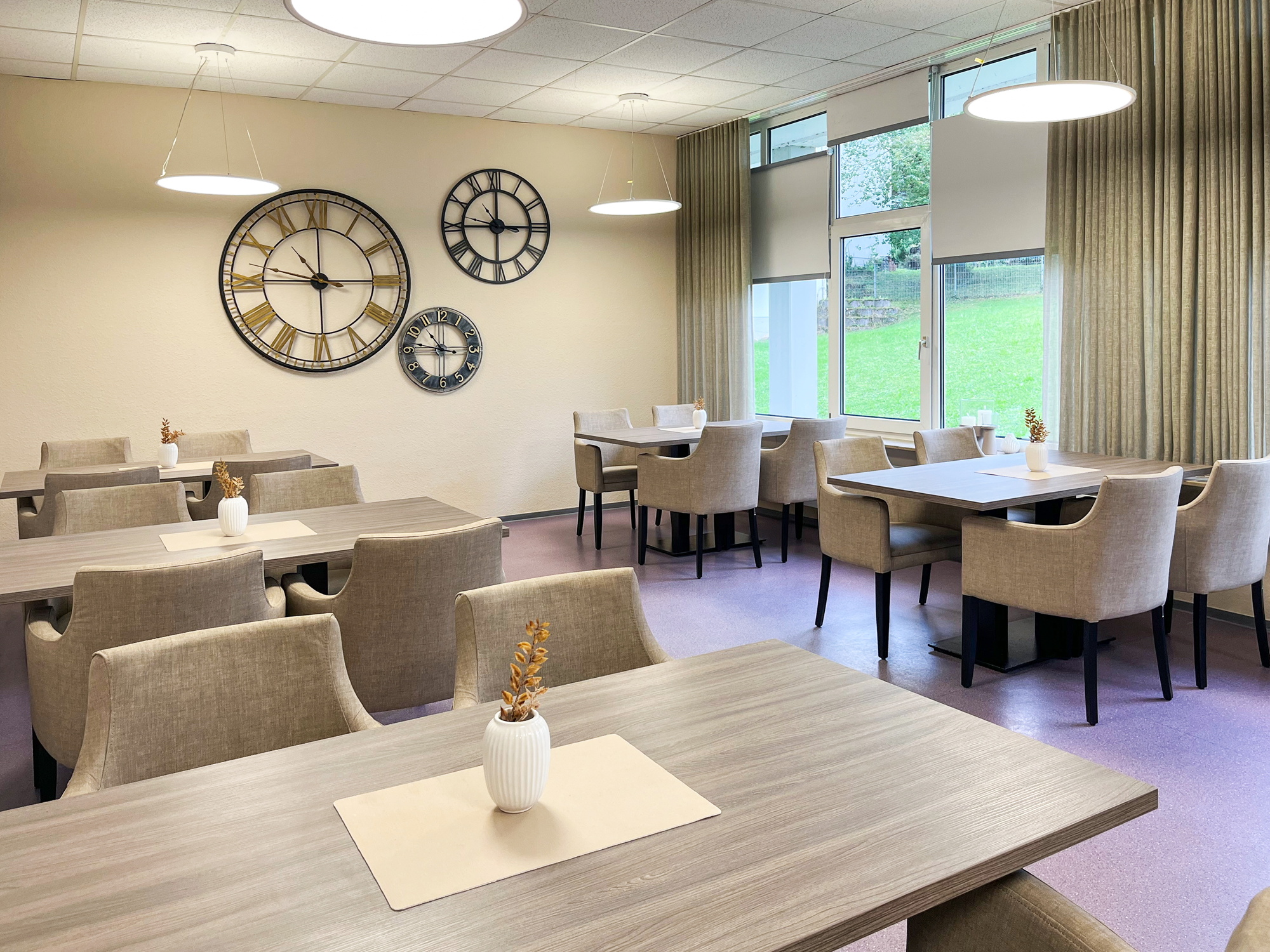 Geranienbepflanzte Balkone, ein gemütliches Café mit Kaminecke, eine umfangreiche Bibliothek und wöchentliche Gottesdienste in unserem liebevoll gestalteten Andachtsraum mit Hinterglasmalerei einer heimischen Künstlerin – all das gehört in unserer Residenz zum Standard.